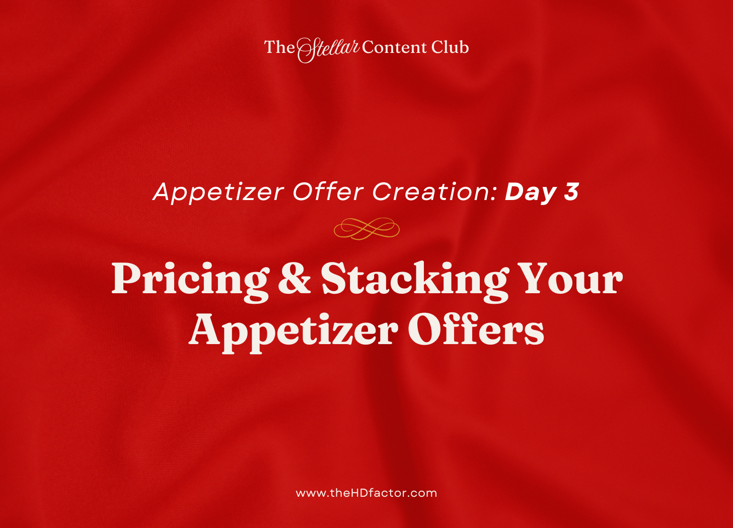 You made it to Day 3 💎 and now we’re getting to the good stuff: money. You’ve already built out irresistible appetizer offers, and now it’s time to slap some price tags on them that make people feel like they’d be out of their minds to pass.